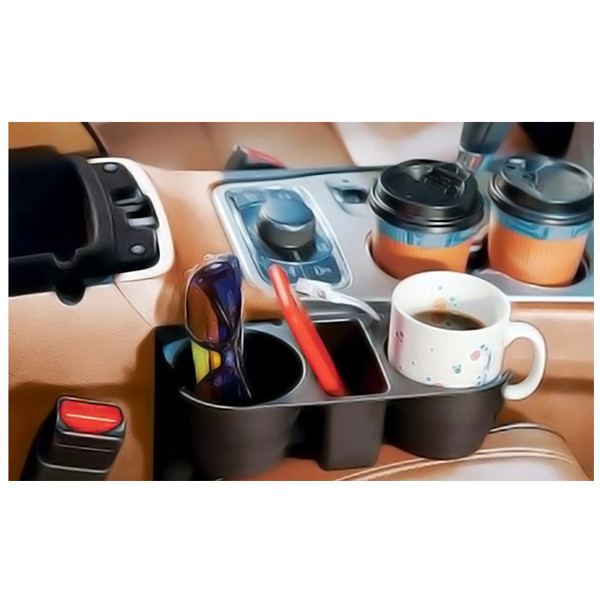 مناسب برای همه خودروها مناسب برای قراردادن بغل صندلی پلاستیک مقاوم 2 عدد جای لیوان و 1 عدد جای سایر وسایل مانند موبایل
