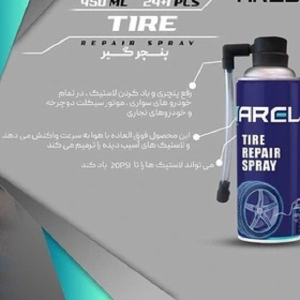 اسپری پنچر گیر لاستیک آرل برای رفع پنچری و باد کردن لاستیک می توان در تمام خودروهای سواری، موتور سیکلت دوچرخه و خودروهای تجاری سبک استفاده کرد. این محصول فوق العاده با هوا به واکنش می دهد و لاستیک های آسیب دیده را ترمیم می کند و می تواند لاستیک ها را تا 20ps باد کند.