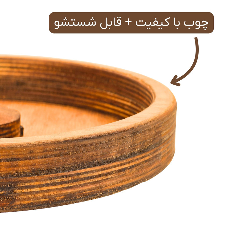 و در نهایت، نکته مهمی که باید در خرید محصولات چوبی به آن توجه داشت: هر تکه چوب، به دلیل بافت طبیعی، دارای رگهها، گرهها و نقشهایی منحصربهفرد است. این ویژگی باعث میشود هر عدد از شیرینیخوری SK10 خاص، یکتا و دارای شخصیت منحصر به فرد خود باشد.