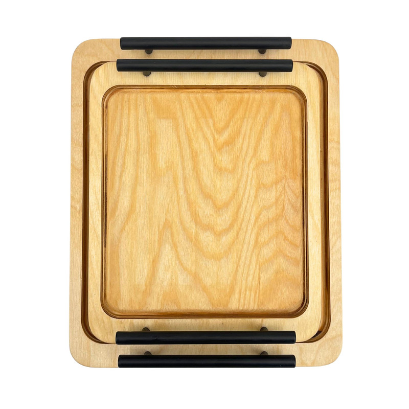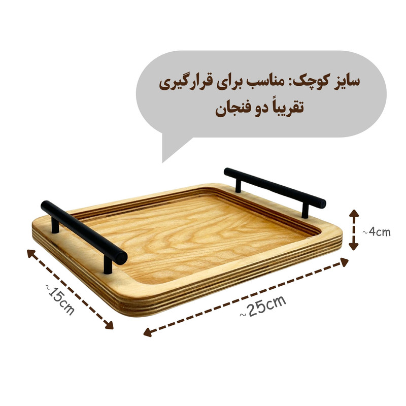 یکی از این ظروف پذیرایی، ست سینی چوبی مدل SN10S است. این مدل سینی در 2 سایز مختلف عرضه می شود مدل SN05S مجموعه ای 2 عددی است که شامل سایز کوچک و بزرگ میباشد که ابعاد آن به ترتیبِ طول ، عرض و ارتفاع برای سایز کوچک در حدود 24، 20 و 4 سانتی متر و برای سایز بزرگ در حدود 29، 24 و 4 سانتی متر است و مجموع وزن آنها معادل 720 گرم است.