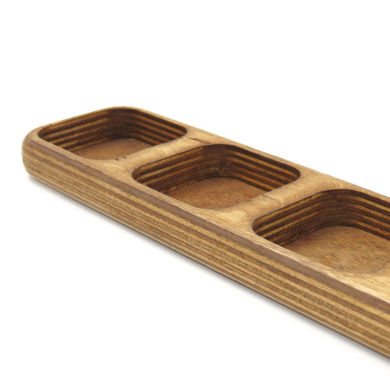 اگر به دنبال این هستید که از میهمانان خود به شکلی خاص و جذاب پذیرایی کنید یا از آن دسته افرادی هستید که برای پذیرایی از خودتان اهمیت زیادی قائلید، استفاده از ظروف سرو و پذیرایی چوبی تجربه ای جذاب و لذت بخش خواهد بود. اردوخوری های چوبی محصولاتی بسیار کاربردی و پرطرفدار هستند. از این محصولات میتوان برای سرو انواع آجیل، تنقلات، شکلات، پاستیل، میوه های خشک و حتی میوههای تازهی برش خورده در میهمانی ها استفاده کرد. بی شک استفاده از ظروف سرو و پذیرایی چوبی میز پذیرایی شما را لوکس و جذاب خواهد کرد. ابعاد آن به ترتیب طول، عرض و ضخامت در حدود 48، 6 و 1.8 سانتیمتر و وزن آن معادل 158 گرم است. این محصول با چوب وارداتیِ با کیفیت و مقاوم نسبت به رطوبت ساخته شده است. نکته بسیار مهم اینکه برای رنگ این محصول از پوشش صدرصد گیاهی ساخت کشور ایتالیا استفاده شده است. این پوشش دارای استاندارد سلامت اتحادیه اروپا (EN71-3) می باشد، در نتیجه این محصول کاملا بهداشتی، قابل شستشو و آبگریز است. گفتنی است که شما نباید برای شستشوی آن از ماشین ظرفشویی استفاده کنید ولی میتوانید به راحتی و بدون نگرانی با استفاده از اسفنجی نرم و کمی مایع ظرفشویی ظرف خود را بشویید و با دستمال خشک کنید. ظروف چوبی بسیار محکم و مقاوم هستند و با رعایت این نکتهی ساده میتوانید برای مدت طولانی از آنها استفاده کنید. هنگام خرید محصولات چوبی در نظر داشته باشید که هر تکه ی چوب به دلیل ماهیت طبیعی آن نقش خاص و منحصر به فرد خودش را دارد.