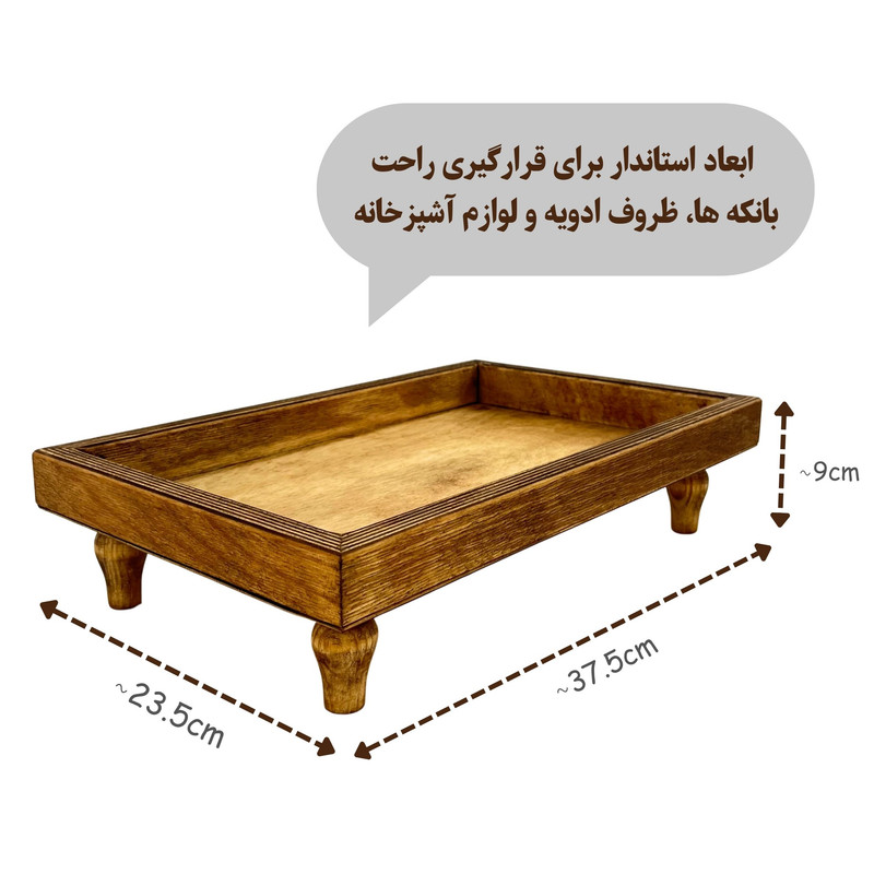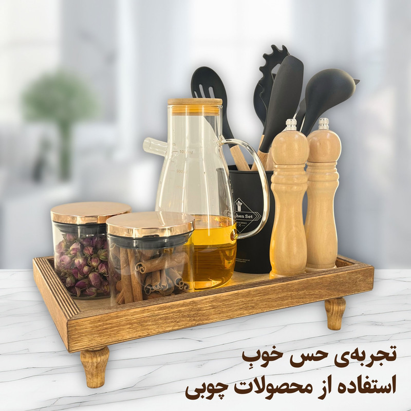 از این محصولات میتوان برای چیدمان ظروف جا ادویه، بانکه ها و ظروف حبوبات استفاده کرد. همچنین این محصول برای مرتب کردن و ساماندهی به وسایل و خردهریزهای آشپزخانه گزینهی مناسبی خواهد بود.