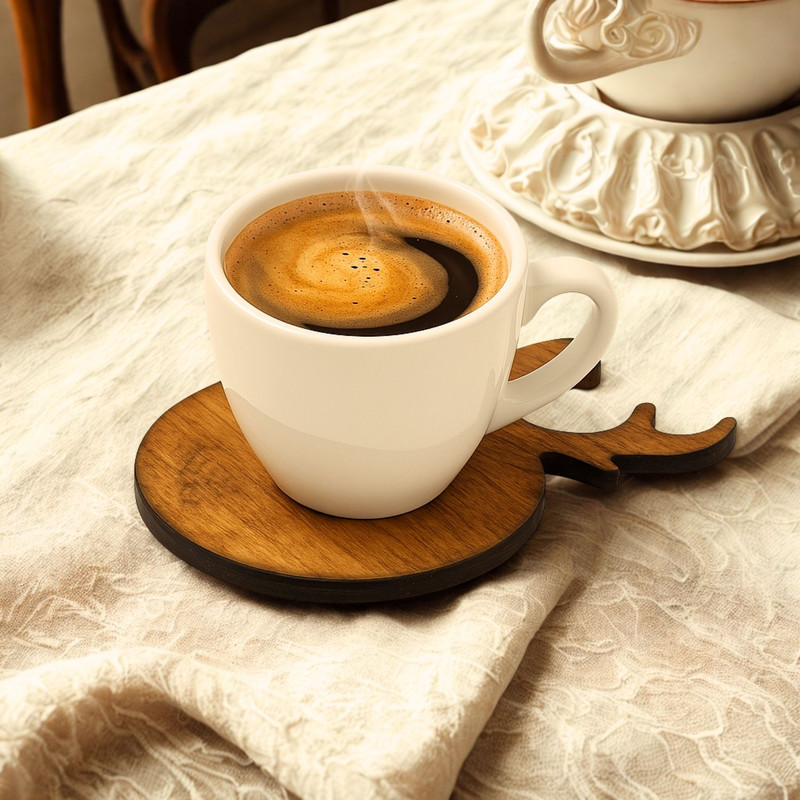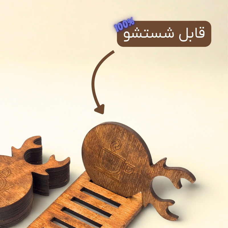 جنس این زیر لیوانیها از چوب طبیعی با کیفیت بالا تهیه شده و بهخوبی پرداخت و سنبادهکاری شدهاند تا سطحی صاف، لطیف و بدون آسیب به لیوان یا فنجان داشته باشند. روی هر قطعه، نماد فنجان حکاکی شده که بر جلوه دکوراتیو آن میافزاید. این محصول نه تنها از سطح میز در برابر لکهها و حرارت محافظت میکند، بلکه بهدلیل فرم خاص و طراحی متفاوت خود، تبدیل به یک عنصر تزئینی نیز خواهد شد.