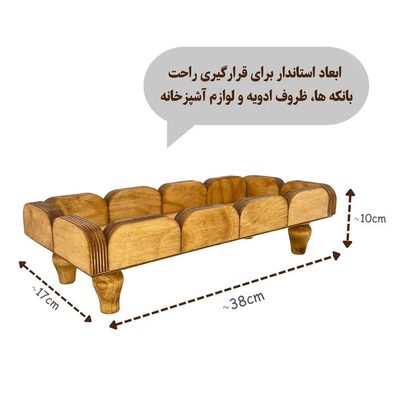 از این محصولات میتوان برای چیدمان ظروف جا ادویه، بانکه ها و ظروف حبوبات استفاده کرد. همچنین این محصول برای مرتب کردن و ساماندهی به وسایل و خردهریزهای آشپزخانه گزینهی مناسبی خواهد بود.