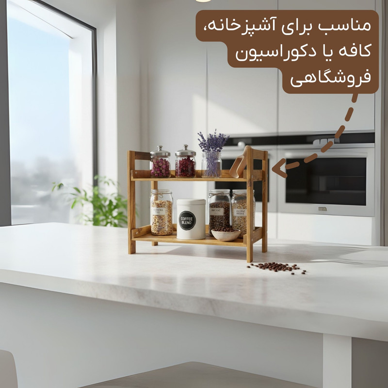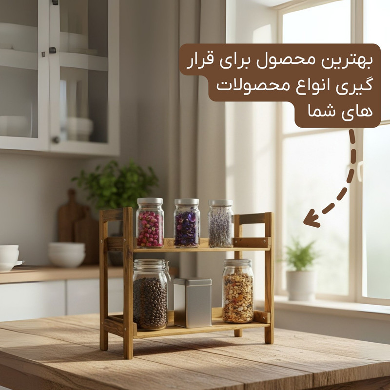 این محصول انتخابی عالی برای کسانی است که به دنبال ترکیبی از زیبایی، کارایی و دوام هستند. چه برای نگهداری ادویهها و قهوه در آشپزخانه، چه برای وسایل تزئینی در اتاق نشیمن یا حتی برای لوازم کوچک در دفتر کار، استند چوبی دوطبقه همیشه کارآمد و چشمنواز خواهد بود.