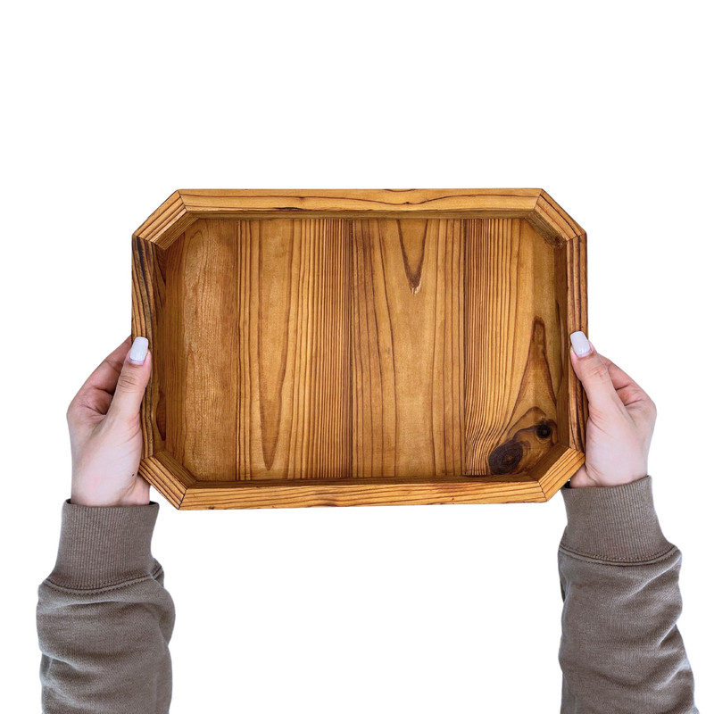 یکی از این ظروف پذیرایی، سینی چوبی مدل SN13 است. این مدل سینی در 2 سایز مختلف عرضه می شود مدل SN131 سایز کوچک آن است و ابعاد آن به ترتیبِ طول ، عرض و ارتفاع در حدود 34، 24 و 5 سانتی متر و وزن آن معادل 510 گرم است.