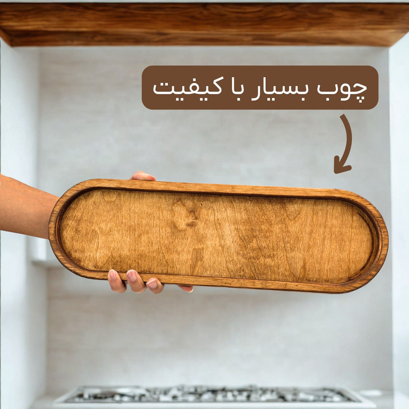 سینی چوبی مدل رولتخوری کد SN21؛ طراحی ظریف، کاربری متنوع، اصالت چوب