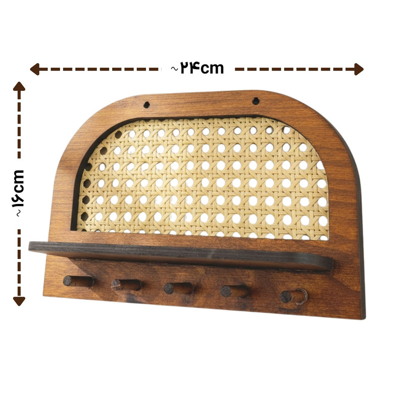 طراحی حصیری و چشمنواز بخش مرکزی این محصول با طرح حصیری تزئین شده که علاوه بر زیبایی، حس اصالت و گرما را به فضا منتقل میکند. ترکیب چوب و حصیر، جلوهای سنتی و در عین حال مدرن ایجاد کرده است. این طراحی باعث میشود جا کلیدی بهراحتی با سبکهای مختلف دکوراسیون، از مینیمال گرفته تا کلاسیک و روستیک، هماهنگ شود.