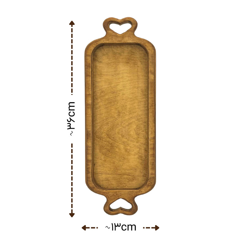 جنس این سینی از چوب طبیعی و باکیفیت است که بافت گرم و طرح منحصربهفرد آن، حس آرامش و طبیعت را به فضا القا میکند. در دو سر سینی، دستههایی با طرح قلبی تعبیه شده که علاوه بر کاربردی بودن، جلوهای عاشقانه و خاص به محصول میدهد. این ویژگی سینی را به یک انتخاب عالی برای پذیرایی عاشقانه، کافهها و دورهمیهای صمیمی تبدیل کرده است.