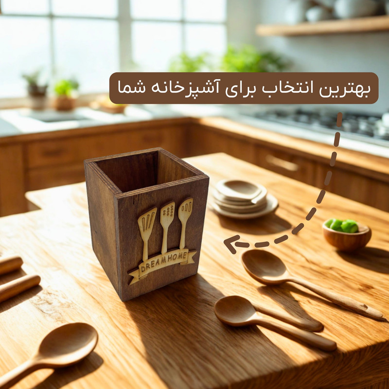 اگر به دنبال راهحلی شیک و منظم برای نگهداری قاشق، چنگال و کارد میوهخوری هستید، استند جا قاشقی مربع چوبی انتخابی ایدهآل برای آشپزخانهی شماست. این محصول با طراحی مینیمال و فرم هندسی ساده، ترکیبی از زیبایی، نظم و کیفیت را در یک اکسسوری کاربردی ارائه میدهد.