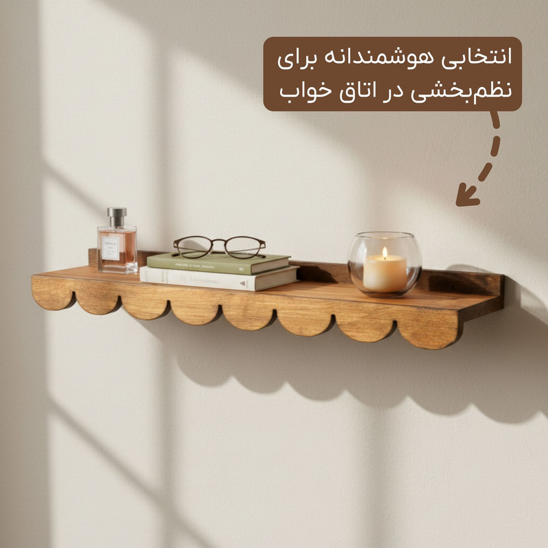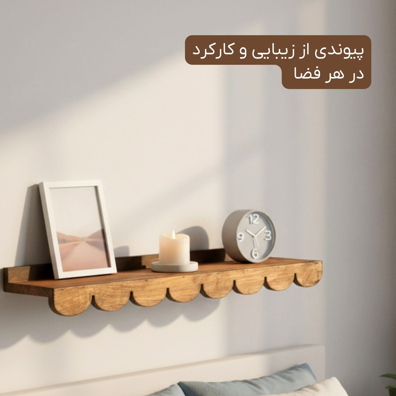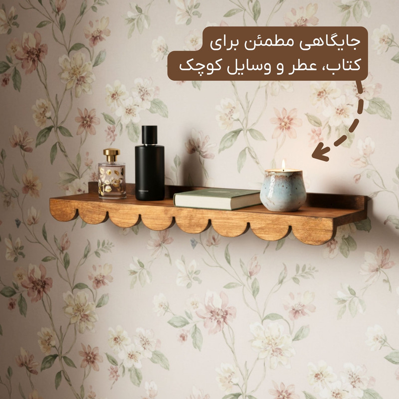 طراحی دالبری و چشمنواز لبههای دالبری این شلف، ظاهری خاص و متفاوت به آن بخشیده است. این طراحی علاوه بر زیبایی، حس ظرافت و هنری بودن را به محصول اضافه میکند. فرم ساده و در عین حال شیک آن باعث میشود شلف بهراحتی با هر نوع دکوراسیونی، چه مدرن و چه کلاسیک، هماهنگ شود.