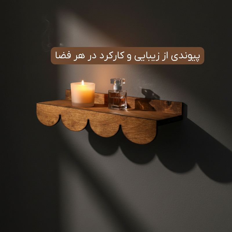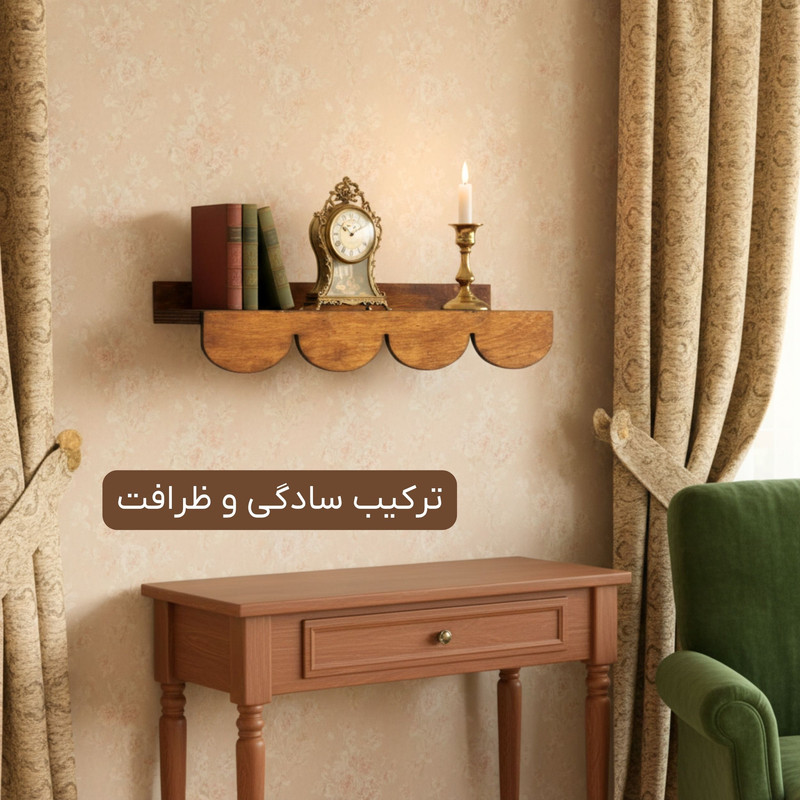 طراحی دالبری و چشمنواز لبههای دالبری این شلف، جلوهای خاص و متفاوت به آن بخشیده است. این طراحی علاوه بر زیبایی، حس ظرافت و هنری بودن را منتقل میکند. فرم ساده و در عین حال شیک آن باعث میشود شلف بهراحتی با هر نوع دکوراسیونی، چه مدرن و چه کلاسیک، هماهنگ شود.