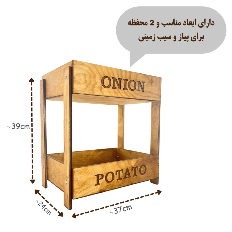 اگر از آن دسته افرادی هستید که برای چیدمان وسایل آشپزخانه اهمیت زیادی قائلید، استفاده از جای سیبزمینی پیاز چوبی 2 طبقه تجربهای جذاب و لذتبخش برای شما خواهد بود.