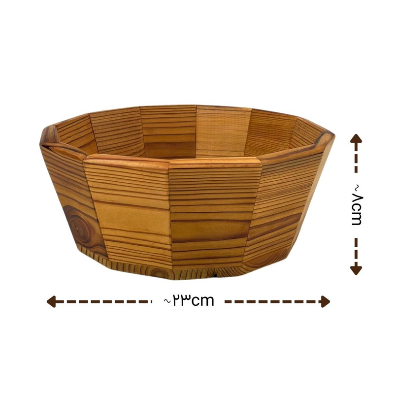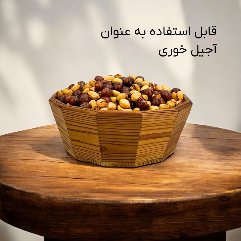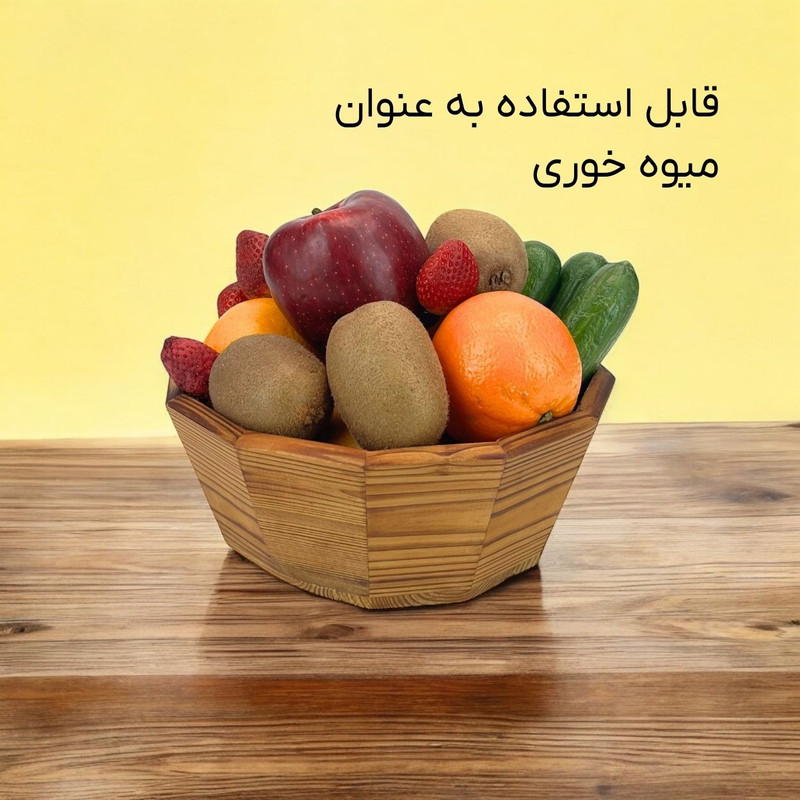 این میوه خوری چوبی، علاوه بر سرو میوه، کاربردهای متنوع دیگری نیز دارد. شما میتوانید از آن برای سرو آجیل، شکلات، شیرینی، نان، و سایر تنقلات استفاده کنید. همچنین، این ظرف زیبا میتواند به عنوان یک وسیله دکوری در دکوراسیون منزل شما نیز مورد استفاده قرار گیرد.