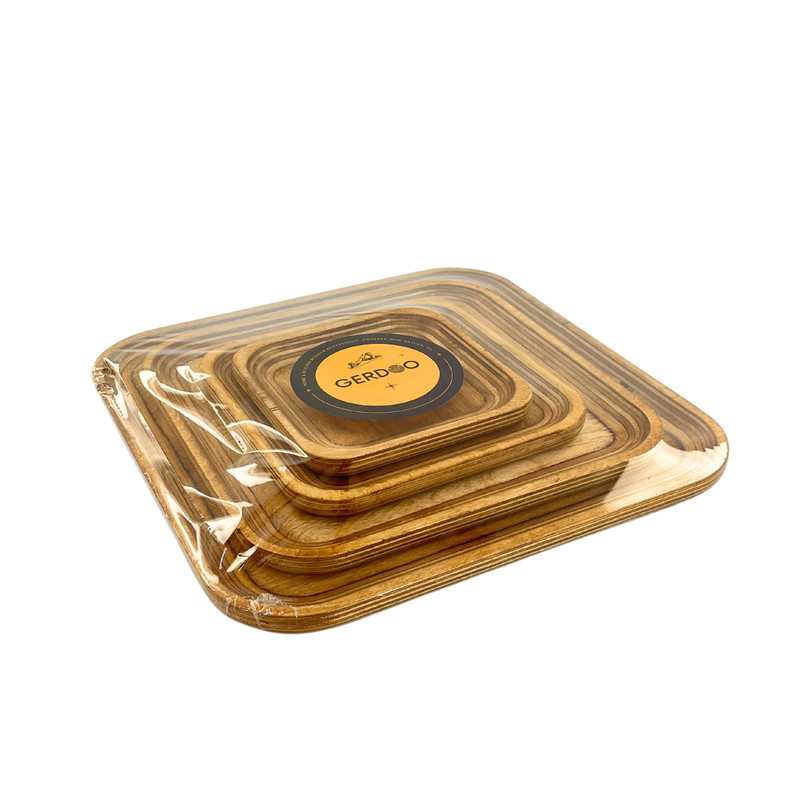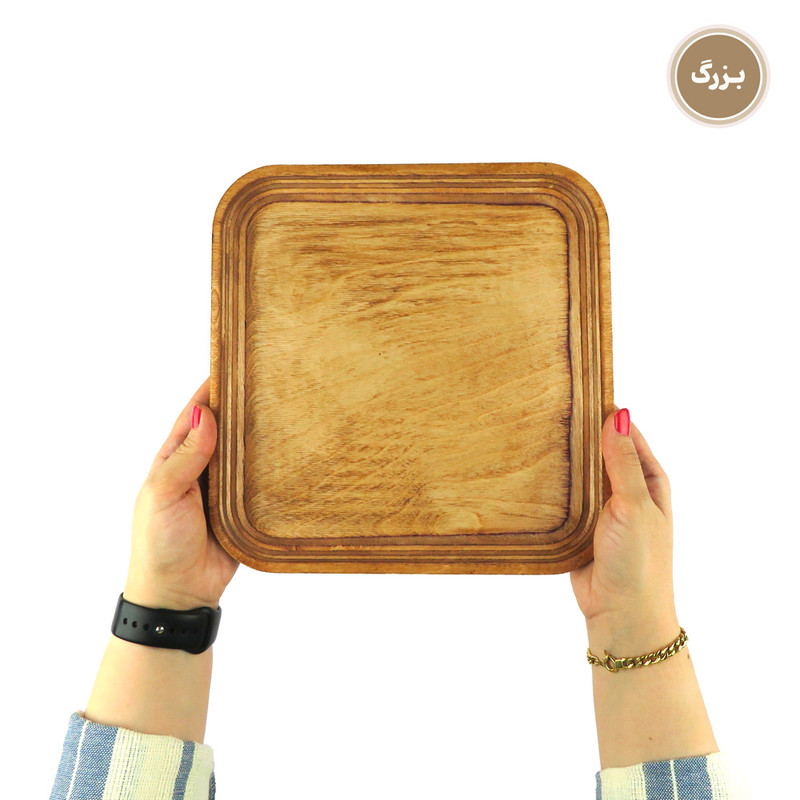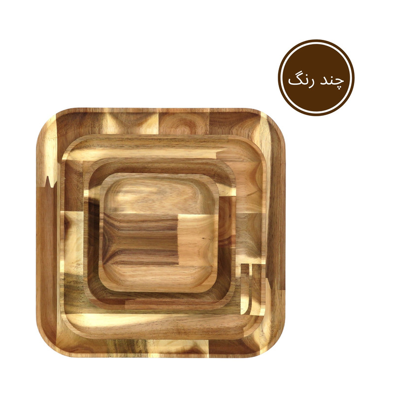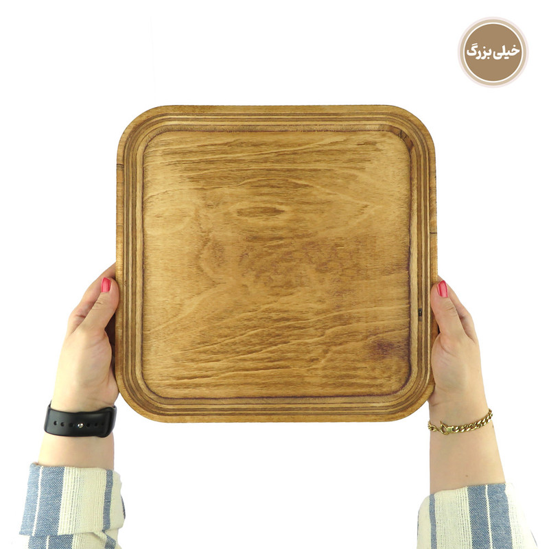 اگر به دنبال این هستید که از میهمانان خود به شکلی خاص و جذاب پذیرایی کنید یا از آن دسته افرادی هستید که برای پذیرایی از خودتان اهمیت زیادی قائلید، استفاده از ظروف سرو و پذیرایی چوبی تجربه ای جذاب و لذت بخش برای شما خواهد بود. همچنین این محصولات میتوانند هدیه ای جذاب برای عزیزانتان باشند. این مدل ست سینی چهار عددی در 4 سایز کوچک، متوسط، بزرگ و خیلی بزرگ عرضه می شود. ابعاد سینی ها به ترتیبِ طول ، عرض و ارتفاع برای سایز کوچک در حدود 14، 14و 1.5 سانتی متر، سایز متوسط 18، 18 و 1.5 سانتی متر، سایز بزرگ 25، 25 و 1.5 سانتی متر و سایز خیلی بزرگ 31، 31 و 1.5 سانتی متر و وزن کامل ست معادل 770 گرم است. این محصول با چوب وارداتیِ با کیفیت و مقاوم نسبت به رطوبت ساخته شده است. نکتهی حائز اهمیت این است که برای رنگ این محصول از پوشش صدرصد گیاهیِ ساخت کشور ایتالیا استفاده شده است. این پوشش دارای استاندارد سلامت اتحادیه اروپا (EN71-3) می باشد، در نتیجه این محصول کاملا بهداشتی، قابل شستشو و آبگریز است. گفتنی است که شما نباید برای شستشوی آن از ماشین ظرفشویی استفاده کنید ولی میتوانید به راحتی و بدون نگرانی با استفاده از اسفنجی نرم و کمی مایع ظرفشویی ظرف خود را بشویید و با دستمال خشک کنید. ظروف چوبی بسیار محکم و مقاوم هستند و با رعایت این نکتهی ساده میتوانید برای مدت طولانی از آنها استفاده کنید. این محصول دارای بسته بندی کاملا بهداشتی و صنعتی (شیرینگ پک) میباشد. هنگام خرید محصولات چوبی در نظر داشته باشید که هر تکه ی چوب به دلیل ماهیت طبیعی آن نقش خاص و منحصر به فرد خودش را دارد.