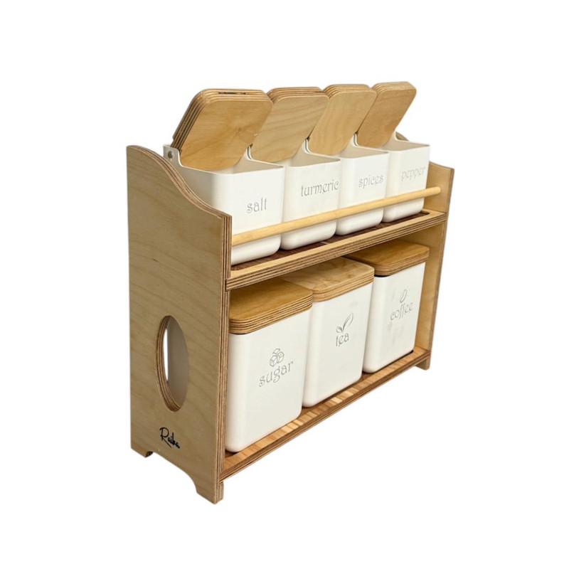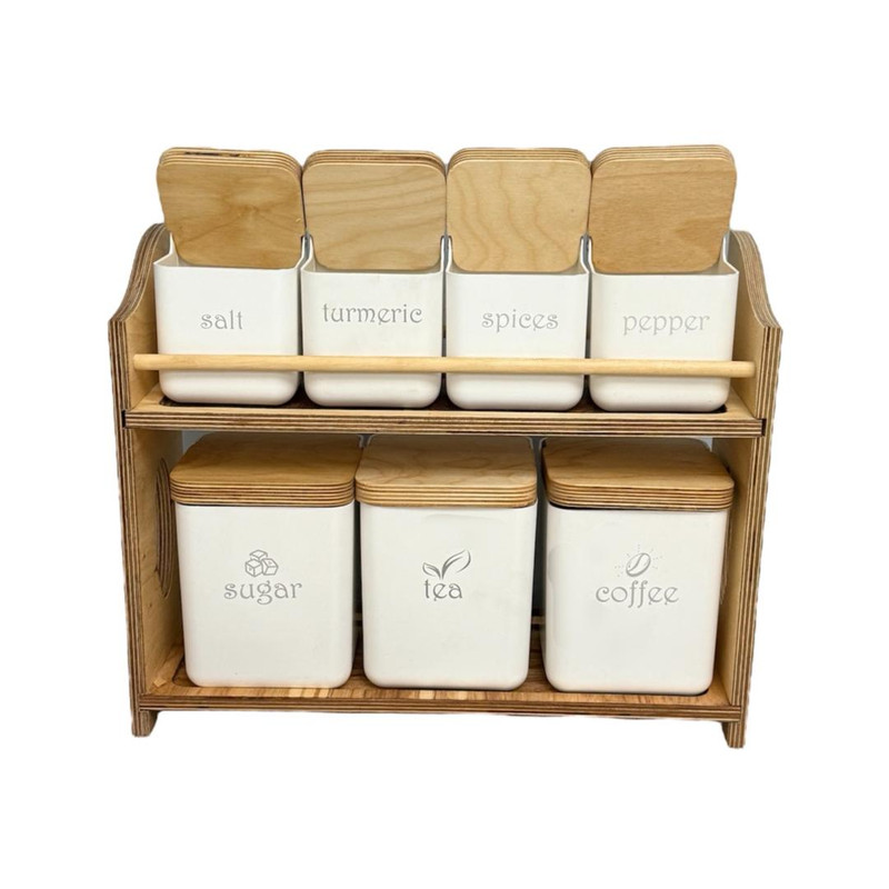 جنس درپوش ادویهچوباستند یا پایهداردابعاد41x14x34 سانتیمتروزن2400 گرمتعداد جای ادویه7 پارچهجنس بدنهپلاستیکرنگسفید