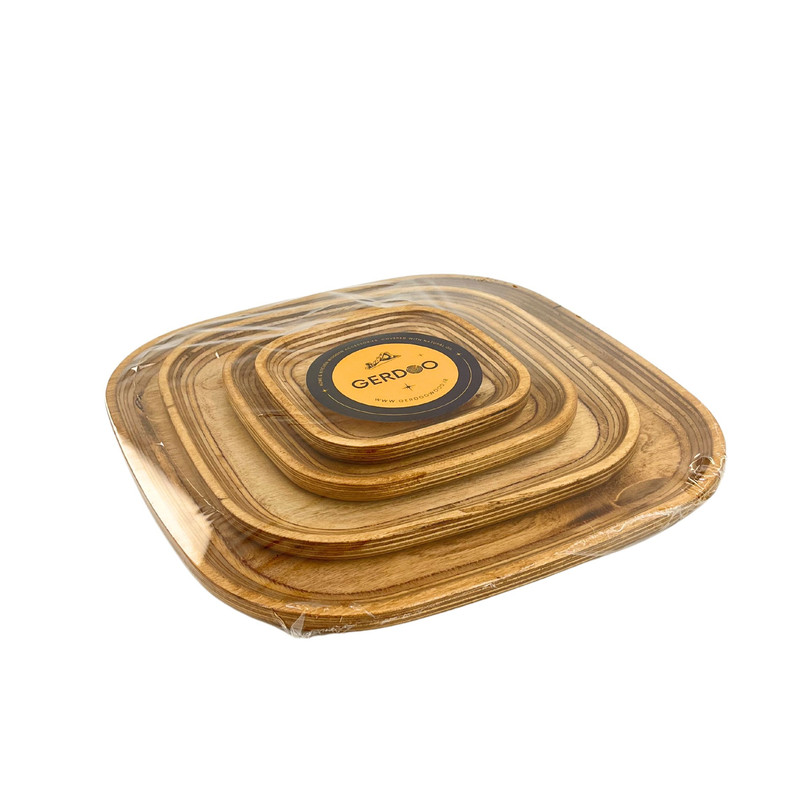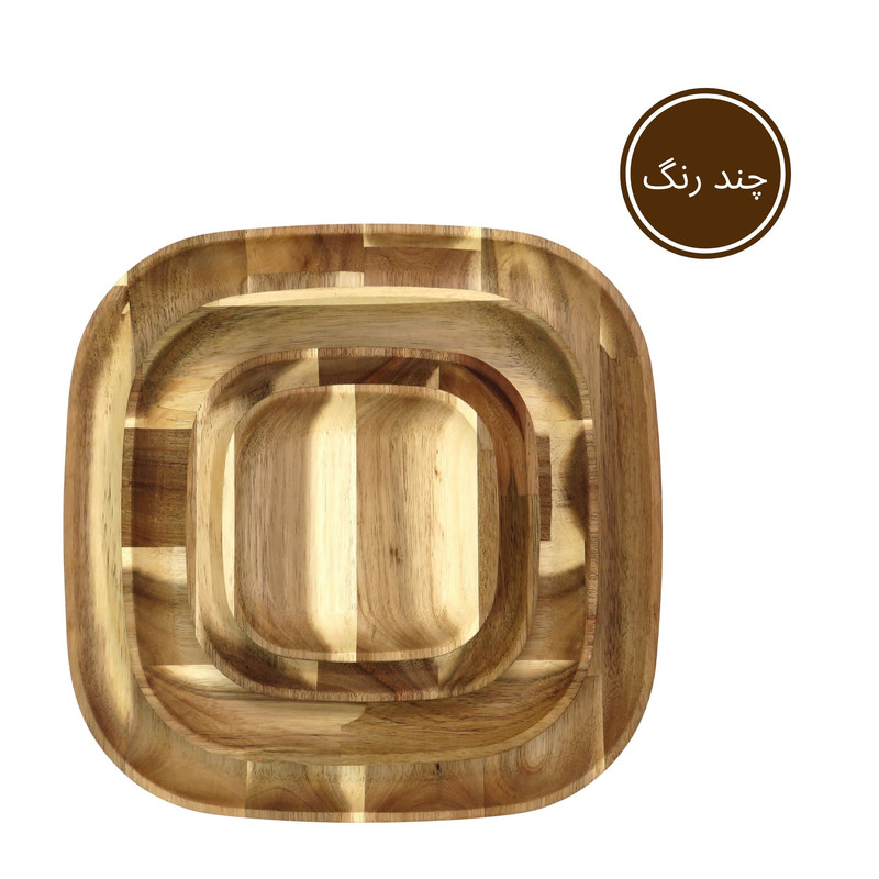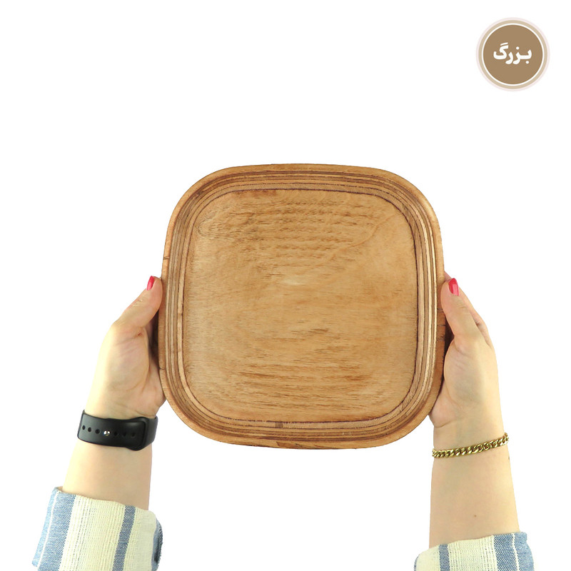 اگر به دنبال این هستید که از میهمانان خود به شکلی خاص و جذاب پذیرایی کنید یا از آن دسته افرادی هستید که برای پذیرایی از خودتان اهمیت زیادی قائلید، استفاده از ظروف سرو و پذیرایی چوبی تجربه ای جذاب و لذت بخش برای شما خواهد بود. همچنین این محصولات میتوانند هدیه ای جذاب برای عزیزانتان باشند. این مدل ست سینی چهار عددی در 4 سایز کوچک، متوسط، بزرگ و خیلی بزرگ عرضه می شود. ابعاد سینی ها به ترتیبِ طول ، عرض و ارتفاع برای سایز کوچک در حدود 14، 14 و 1.5 سانتی متر، سایز متوسط 18، 18، و 1.5 سانتی متر، سایز بزرگ 25، 25 و 1.5 سانتی متر و سایز خیلی بزرگ 31، 31 و 1.5 سانتی متر و وزن کامل ست معادل 740 گرم است. این محصول با چوب وارداتیِ با کیفیت و مقاوم نسبت به رطوبت ساخته شده است. نکتهی حائز اهمیت این است که برای رنگ این محصول از پوشش صدرصد گیاهیِ ساخت کشور ایتالیا استفاده شده است. این پوشش دارای استاندارد سلامت اتحادیه اروپا (EN71-3) می باشد، در نتیجه این محصول کاملا بهداشتی، قابل شستشو و آبگریز است. گفتنی است که شما نباید برای شستشوی آن از ماشین ظرفشویی استفاده کنید ولی میتوانید به راحتی و بدون نگرانی با استفاده از اسفنجی نرم و کمی مایع ظرفشویی ظرف خود را بشویید و با دستمال خشک کنید. ظروف چوبی بسیار محکم و مقاوم هستند و با رعایت این نکتهی ساده میتوانید برای مدت طولانی از آنها استفاده کنید. این محصول دارای بسته بندی کاملا بهداشتی و صنعتی (شیرینگ پک) میباشد. هنگام خرید محصولات چوبی در نظر داشته باشید که هر تکه ی چوب به دلیل ماهیت طبیعی آن نقش خاص و منحصر به فرد خودش را دارد.