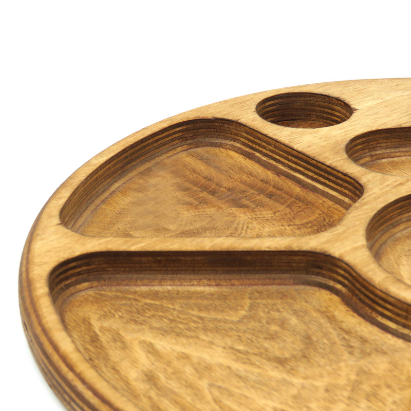 اگر به دنبال این هستید که از میهمانان خود به شکلی خاص و جذاب پذیرایی کنید یا از آن دسته افرادی هستید که برای پذیرایی از خودتان اهمیت زیادی قائلید، استفاده از ظروف سرو و پذیرایی چوبی تجربه ای جذاب و لذت بخش خواهد بود. اردوخوری های چوبی محصولاتی بسیار کاربردی و پرطرفدار هستند. از این محصولات میتوان برای سرو انواع آجیل، تنقلات، شکلات، پاستیل، میوه های خشک و حتی میوههای تازهی برش خورده در میهمانی ها استفاده کرد. بی شک استفاده از ظروف سرو و پذیرایی چوبی میز پذیرایی شما را لوکس و جذاب خواهد کرد. ابعاد آن به ترتیب طول، عرض و ضخامت در حدود 35، 35 و 1.8 سانتیمتر و وزن آن معادل 630 گرم است. این محصول با چوب وارداتیِ با کیفیت و مقاوم نسبت به رطوبت ساخته شده است. نکته بسیار مهم اینکه برای رنگ این محصول از پوشش صدرصد گیاهی ساخت کشور ایتالیا استفاده شده است. این پوشش دارای استاندارد سلامت اتحادیه اروپا (EN71-3) می باشد، در نتیجه این محصول کاملا بهداشتی، قابل شستشو و آبگریز است. گفتنی است که شما نباید برای شستشوی آن از ماشین ظرفشویی استفاده کنید ولی میتوانید به راحتی و بدون نگرانی با استفاده از اسفنجی نرم و کمی مایع ظرفشویی ظرف خود را بشویید و با دستمال خشک کنید. ظروف چوبی بسیار محکم و مقاوم هستند و با رعایت این نکتهی ساده میتوانید برای مدت طولانی از آنها استفاده کنید. هنگام خرید محصولات چوبی در نظر داشته باشید که هر تکه ی چوب به دلیل ماهیت طبیعی آن نقش خاص و منحصر به فرد خودش را دارد.