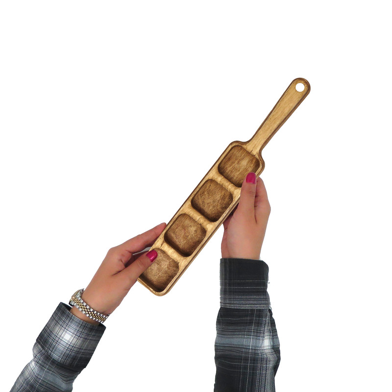 اگر به دنبال این هستید که از میهمانان خود به شکلی خاص و جذاب پذیرایی کنید یا از آن دسته افرادی هستید که برای پذیرایی از خودتان اهمیت زیادی قائلید، استفاده از ظروف سرو و پذیرایی چوبی تجربه ای جذاب و لذت بخش خواهد بود. اردوخوری های چوبی محصولاتی بسیار کاربردی و پرطرفدار هستند. از این محصولات میتوان برای سرو انواع آجیل، تنقلات، شکلات، پاستیل، میوه های خشک و حتی میوههای تازهی برش خورده در میهمانی ها استفاده کرد. بی شک استفاده از ظروف سرو و پذیرایی چوبی میز پذیرایی شما را لوکس و جذاب خواهد کرد. ابعاد آن به ترتیب طول، عرض و ضخامت در حدود 36، 6 و 1.8 سانتیمتر و وزن آن معادل 116 گرم است. این محصول با چوب وارداتیِ با کیفیت و مقاوم نسبت به رطوبت ساخته شده است. نکته بسیار مهم اینکه برای رنگ این محصول از پوشش صدرصد گیاهی ساخت کشور ایتالیا استفاده شده است. این پوشش دارای استاندارد سلامت اتحادیه اروپا (EN71-3) می باشد، در نتیجه این محصول کاملا بهداشتی، قابل شستشو و آبگریز است. گفتنی است که شما نباید برای شستشوی آن از ماشین ظرفشویی استفاده کنید ولی میتوانید به راحتی و بدون نگرانی با استفاده از اسفنجی نرم و کمی مایع ظرفشویی ظرف خود را بشویید و با دستمال خشک کنید. ظروف چوبی بسیار محکم و مقاوم هستند و با رعایت این نکتهی ساده میتوانید برای مدت طولانی از آنها استفاده کنید. هنگام خرید محصولات چوبی در نظر داشته باشید که هر تکه ی چوب به دلیل ماهیت طبیعی آن نقش خاص و منحصر به فرد خودش را دارد.