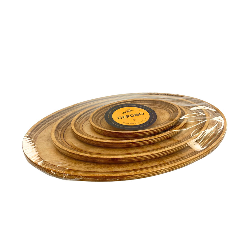 این مدل ست سینی چهار عددی در 4 سایز کوچک، متوسط، بزرگ و خیلی بزرگ عرضه می شود. ابعاد سینی ها به ترتیبِ طول ، عرض و ارتفاع برای سایز کوچک در حدود 18، 13 و 1.5 سانتی متر، سایز متوسط 23، 16 ، و 1.5 سانتی متر، سایز بزرگ 31، 22 و 1.5 سانتی متر و سایز خیلی بزرگ 40، 28 و 1.5 سانتی متر و وزن کامل ست معادل 740 گرم است. این محصول با چوب وارداتیِ با کیفیت و مقاوم نسبت به رطوبت ساخته شده است. نکتهی حائز اهمیت این است که برای رنگ این محصول از پوشش صدرصد گیاهیِ استفاده شده است. این پوشش دارای استاندارد سلامت اتحادیه اروپا (EN71-3) می باشد، در نتیجه این محصول کاملا بهداشتی، قابل شستشو و آبگریز است. گفتنی است که شما نباید برای شستشوی آن از ماشین ظرفشویی استفاده کنید ولی میتوانید به راحتی و بدون نگرانی با استفاده از اسفنجی نرم و کمی مایع ظرفشویی ظرف خود را بشویید و با دستمال خشک کنید. ظروف چوبی بسیار محکم و مقاوم هستند و با رعایت این نکتهی ساده میتوانید برای مدت طولانی از آنها استفاده کنید. این محصول دارای بسته بندی کاملا بهداشتی و صنعتی (شیرینگ پک) میباشد.