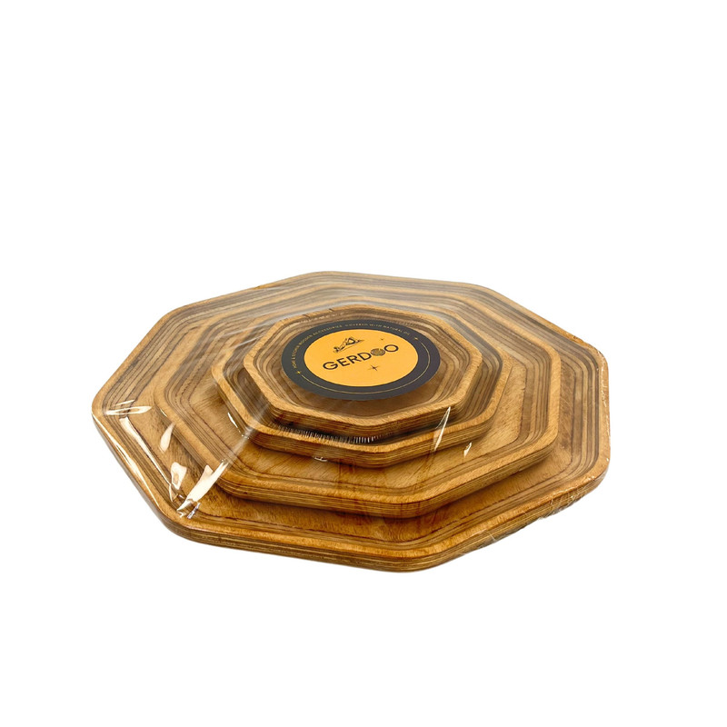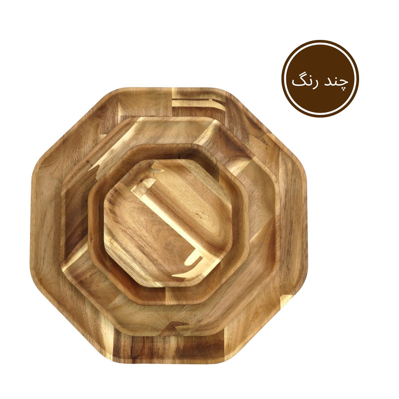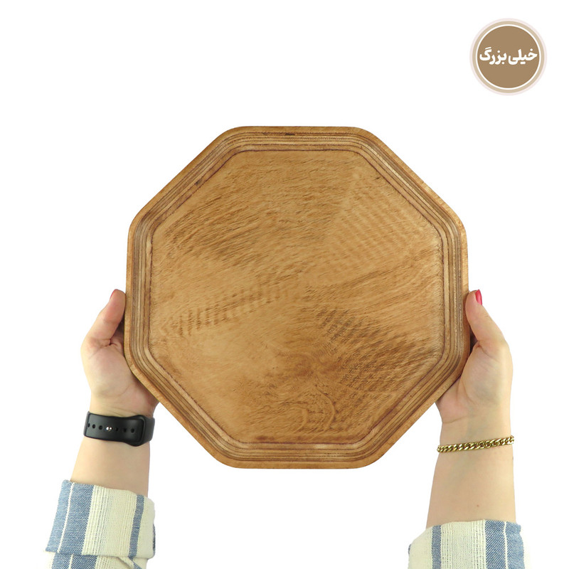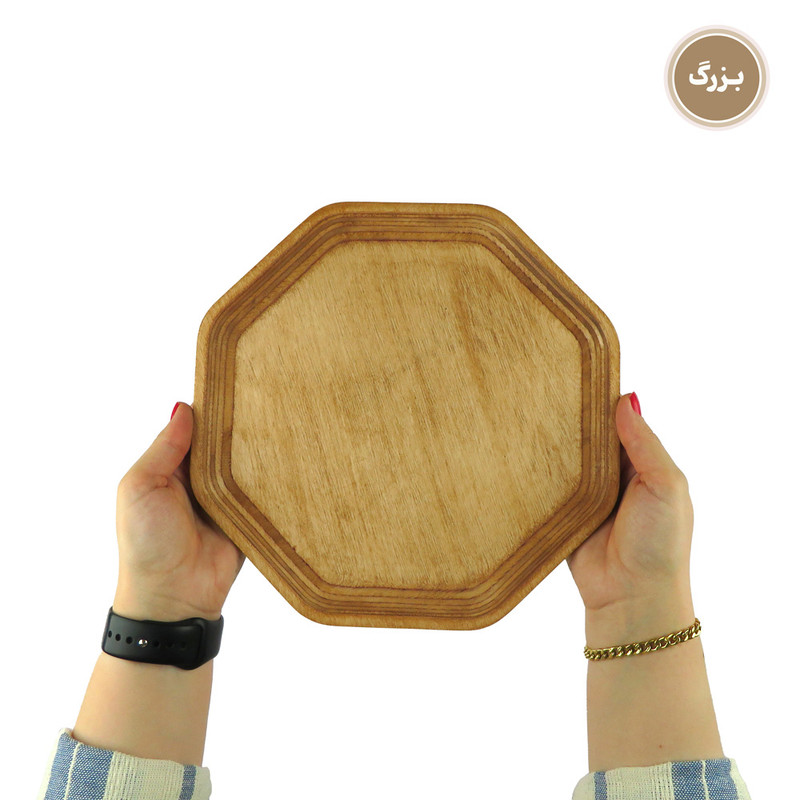 اگر به دنبال این هستید که از میهمانان خود به شکلی خاص و جذاب پذیرایی کنید یا از آن دسته افرادی هستید که برای پذیرایی از خودتان اهمیت زیادی قائلید، استفاده از ظروف سرو و پذیرایی چوبی تجربه ای جذاب و لذت بخش برای شما خواهد بود. همچنین این محصولات میتوانند هدیه ای جذاب برای عزیزانتان باشند. این مدل ست سینی چهار عددی در 4 سایز کوچک، متوسط، بزرگ و خیلی بزرگ عرضه می شود. ابعاد سینی ها به ترتیبِ طول ، عرض و ارتفاع برای سایز کوچک در حدود 15، 15 و 1.5 سانتی متر، سایز متوسط 19، 19، و 1.5 سانتی متر، سایز بزرگ 26، 26 و 1.5 سانتی متر و سایز خیلی بزرگ 33، 33 و 1.5 سانتی متر و وزن کامل ست معادل 690 گرم است. این محصول با چوب وارداتیِ با کیفیت و مقاوم نسبت به رطوبت ساخته شده است. نکتهی حائز اهمیت این است که برای رنگ این محصول از پوشش صدرصد گیاهیِ ساخت کشور ایتالیا استفاده شده است. این پوشش دارای استاندارد سلامت اتحادیه اروپا (EN71-3) می باشد، در نتیجه این محصول کاملا بهداشتی، قابل شستشو و آبگریز است. گفتنی است که شما نباید برای شستشوی آن از ماشین ظرفشویی استفاده کنید ولی میتوانید به راحتی و بدون نگرانی با استفاده از اسفنجی نرم و کمی مایع ظرفشویی ظرف خود را بشویید و با دستمال خشک کنید. ظروف چوبی بسیار محکم و مقاوم هستند و با رعایت این نکتهی ساده میتوانید برای مدت طولانی از آنها استفاده کنید. این محصول دارای بسته بندی کاملا بهداشتی و صنعتی (شیرینگ پک) میباشد. هنگام خرید محصولات چوبی در نظر داشته باشید که هر تکه ی چوب به دلیل ماهیت طبیعی آن نقش خاص و منحصر به فرد خودش را دارد.