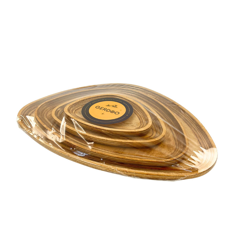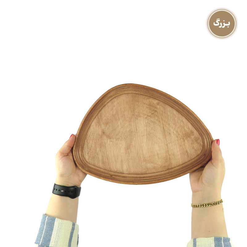 اگر به دنبال این هستید که از میهمانان خود به شکلی خاص و جذاب پذیرایی کنید یا از آن دسته افرادی هستید که برای پذیرایی از خودتان اهمیت زیادی قائلید، استفاده از ظروف سرو و پذیرایی چوبی تجربه ای جذاب و لذت بخش برای شما خواهد بود. همچنین این محصولات میتوانند هدیه ای جذاب برای عزیزانتان باشند. این مدل ست سینی چهار عددی در 4 سایز کوچک، متوسط، بزرگ و خیلی بزرگ عرضه می شود. ابعاد سینی ها به ترتیبِ طول ، عرض و ارتفاع برای سایز کوچک در حدود 18، 13و 1.5 سانتی متر، سایز متوسط 23، 17 و 1.5 سانتی متر، سایز بزرگ 31، 24 و 1.5 سانتی متر و سایز خیلی بزرگ 40، 29 و 1.5 سانتی متر و وزن کامل ست معادل 750 گرم است. این محصول با چوب وارداتیِ با کیفیت و مقاوم نسبت به رطوبت ساخته شده است. نکتهی حائز اهمیت این است که برای رنگ این محصول از پوشش صدرصد گیاهیِ ساخت کشور ایتالیا استفاده شده است. این پوشش دارای استاندارد سلامت اتحادیه اروپا (EN71-3) می باشد، در نتیجه این محصول کاملا بهداشتی، قابل شستشو و آبگریز است. گفتنی است که شما نباید برای شستشوی آن از ماشین ظرفشویی استفاده کنید ولی میتوانید به راحتی و بدون نگرانی با استفاده از اسفنجی نرم و کمی مایع ظرفشویی ظرف خود را بشویید و با دستمال خشک کنید. ظروف چوبی بسیار محکم و مقاوم هستند و با رعایت این نکتهی ساده میتوانید برای مدت طولانی از آنها استفاده کنید. این محصول دارای بسته بندی کاملا بهداشتی و صنعتی (شیرینگ پک) میباشد. هنگام خرید محصولات چوبی در نظر داشته باشید که هر تکه ی چوب به دلیل ماهیت طبیعی آن نقش خاص و منحصر به فرد خودش را دارد.